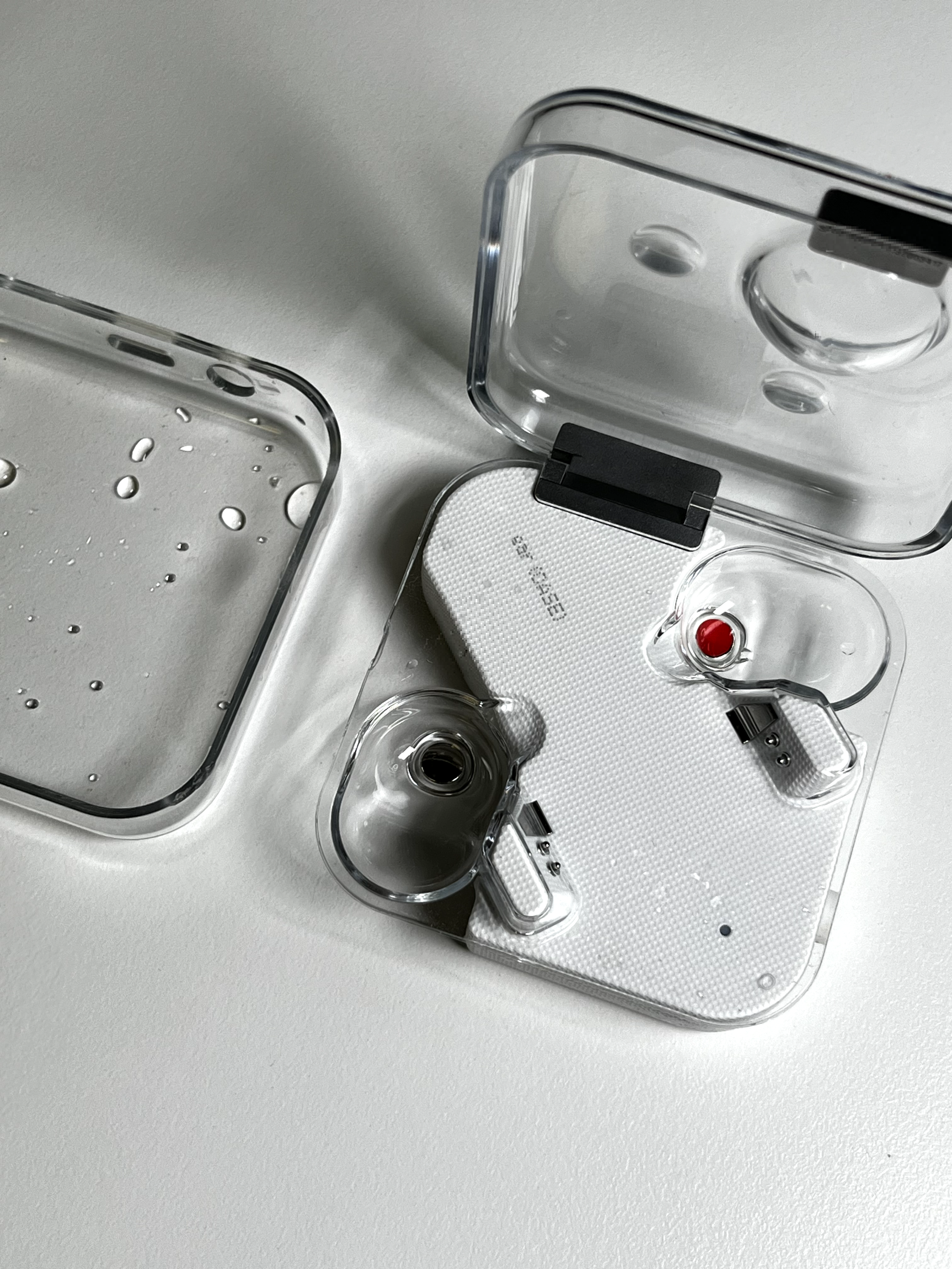 최근에는 통화 녹음이 가능한 안드로이드 스마트폰이 필요해져서 Nothing Phone(2a)를 구매해 메인 스마트폰으로 사용하고 있었습니다. 스마트폰도 구매했겠다, Nothing 기기 간 연동성이 궁금해서 ear(1)도 같이 사용해 보려고 가방 맨 뒷주머니에 넣어두었던 저는 이 사실을 깜빡 잊고 비가 펑펑 내리는 날에 그대로 밖으로 나가버렸습니다.