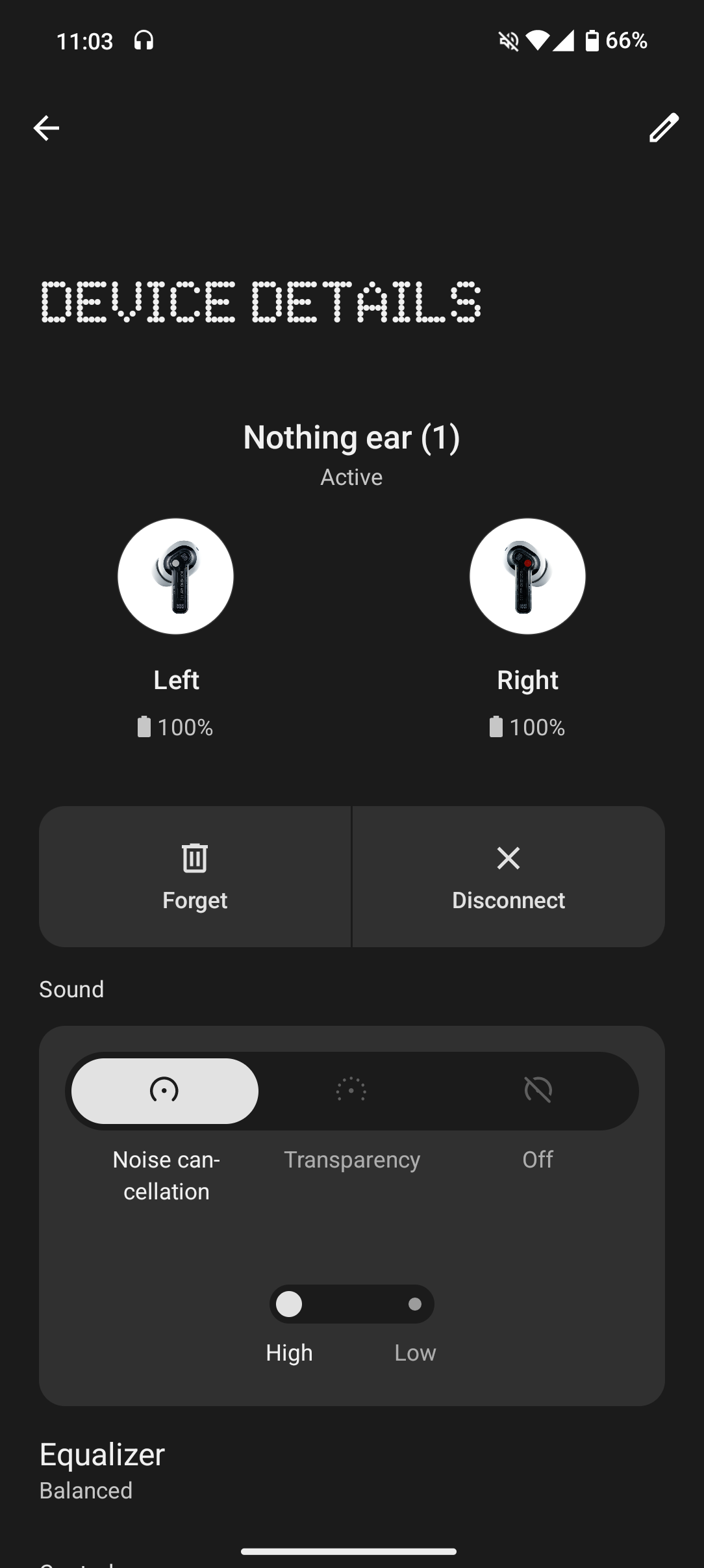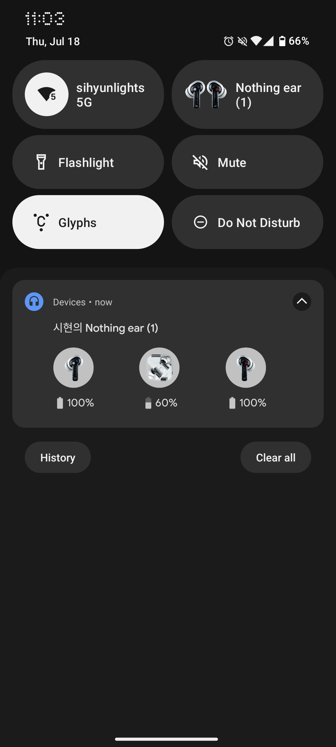 그래도 작동에는 아직까지 문제가 없습니다! 오랜만에 사용하면서 여러가지 느낀 점도 있는데, 음질은 지금 시점에서 좋은 편은 아니지만 액티브 노이즈 캔슬링 성능이 WF-1000XM5와 비교하더라도 크게 차이를 느끼기 어려웠고, Nothing X 어플리케이션과 Nothing OS가 꾸준히 업데이트되면서 사용성도 상당히 좋아진 것이 눈에 띄었습니다. 정말 아쉬운 것은 시간이 지나니 배터리 수명이 많이 나빠진 것 같아 언제까지 정상적인 사용이 가능할지는 모르겠습니다.